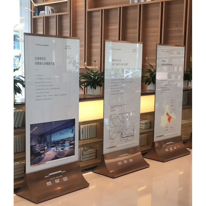 立屏展架的展示面積相對較小,但可以承載多種展示形式:可用文字、圖片、音頻、視頻等多種方式進(jìn)行展示,豐富多彩。信息傳遞更加直觀、易懂、深入人心。